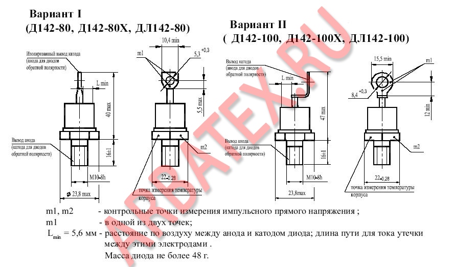 Масса диода не более 48 г.