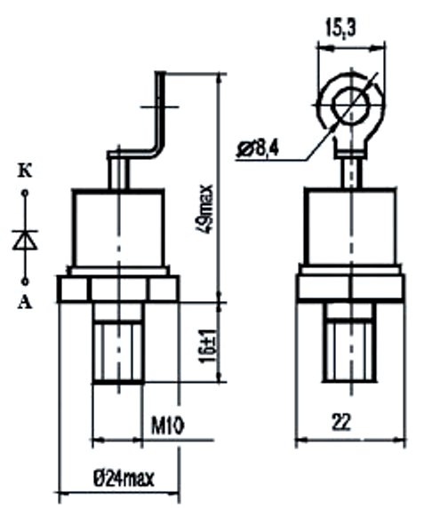 • Uoбp макс, В - Максимальное постоянное обратное напряжение
