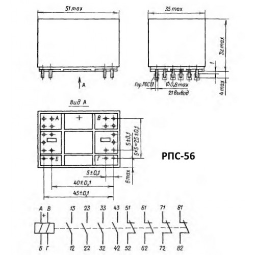 РПС-56 РС4.569.907-03 7з + 1р 10,1…13,9 95 ±9,5 8,5 - 9,5 - 0,25 10-6…0,35 0,001…60