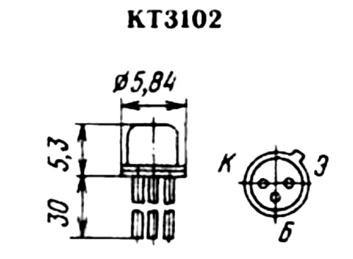Выпускаются КТ3102И в металлостеклянном корпусе с гибкими выводами.